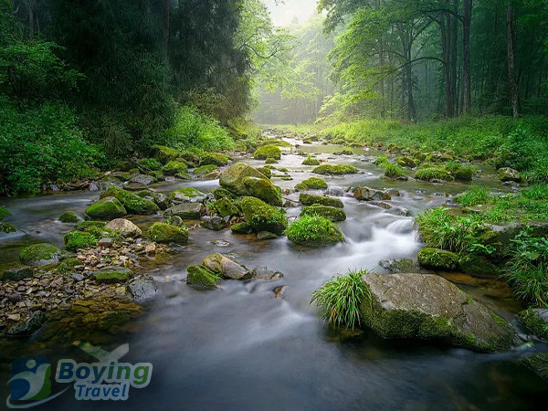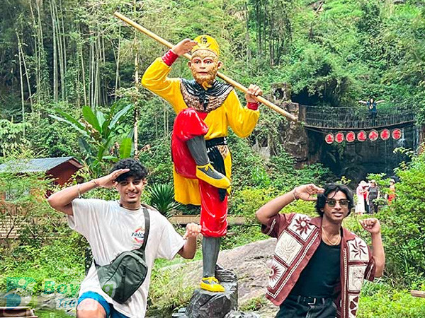 14:00 Stroll along the essence section of Jinbian Stream, admire attractions such as Guanyin Sending a Child and Shenying Protecting the Whip, and interact with wild macaques